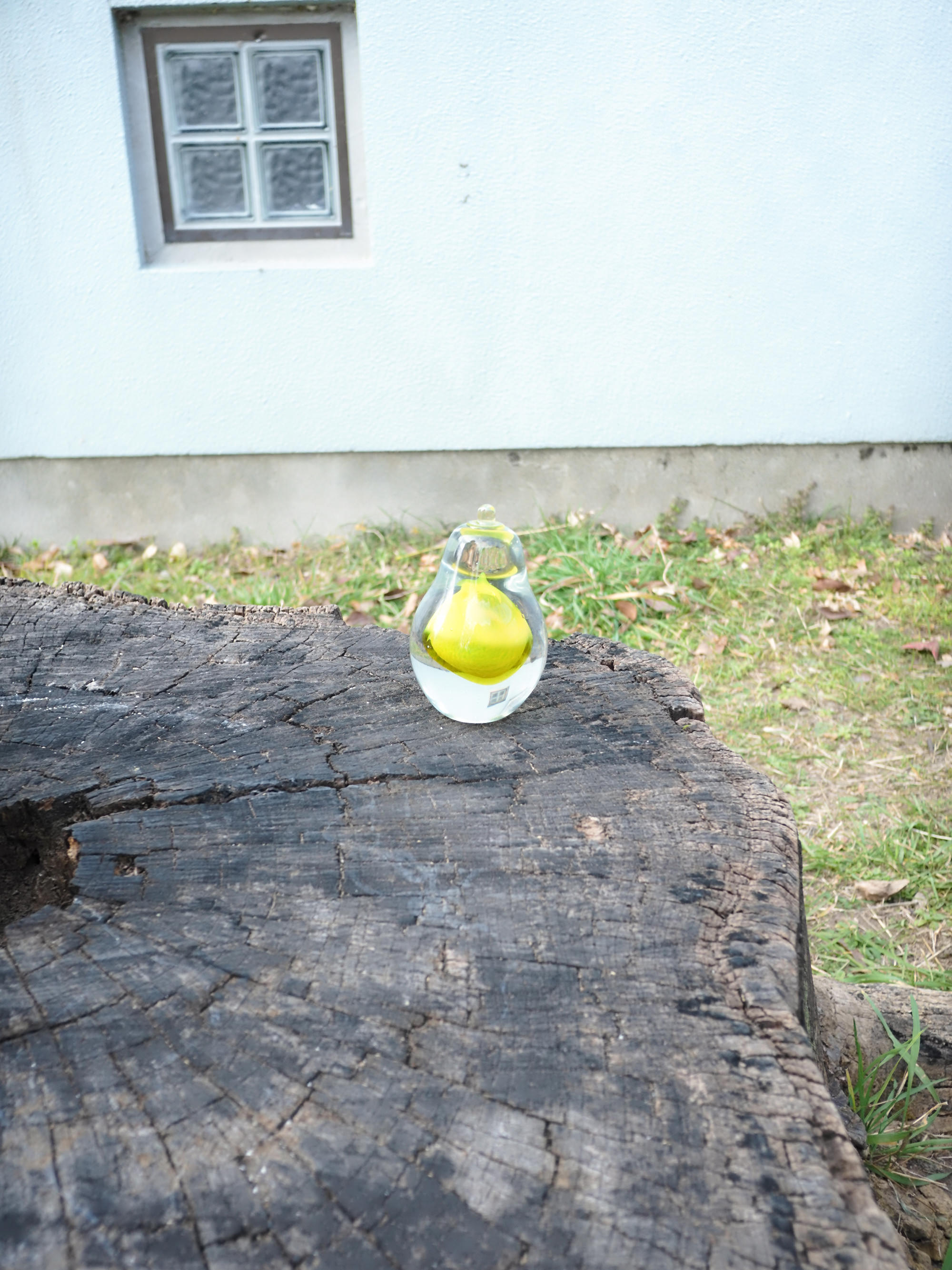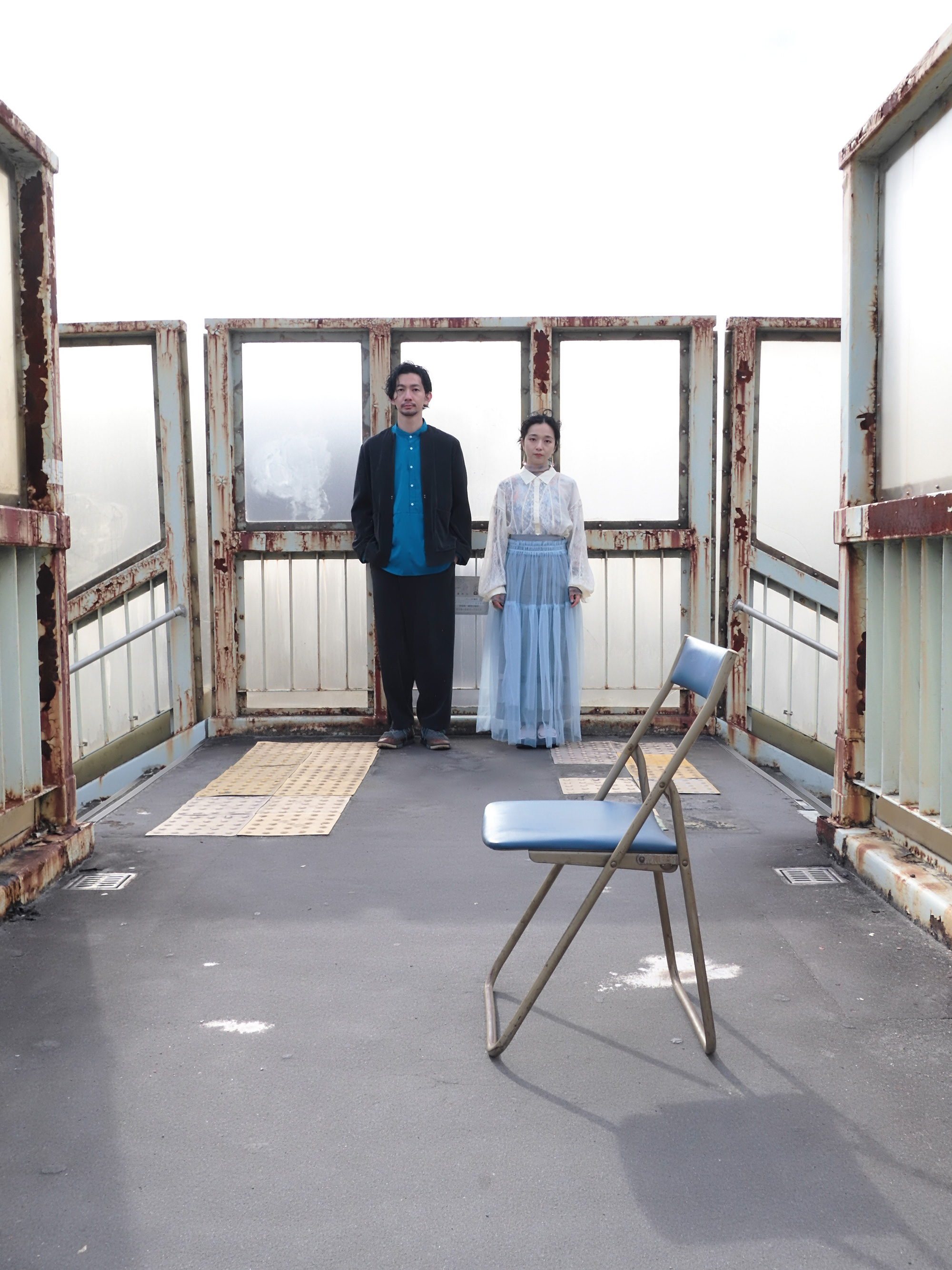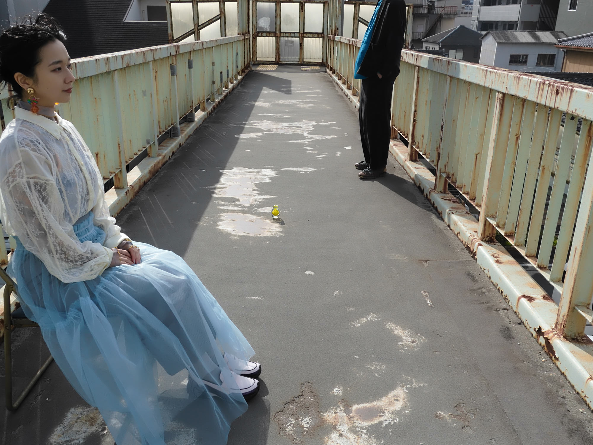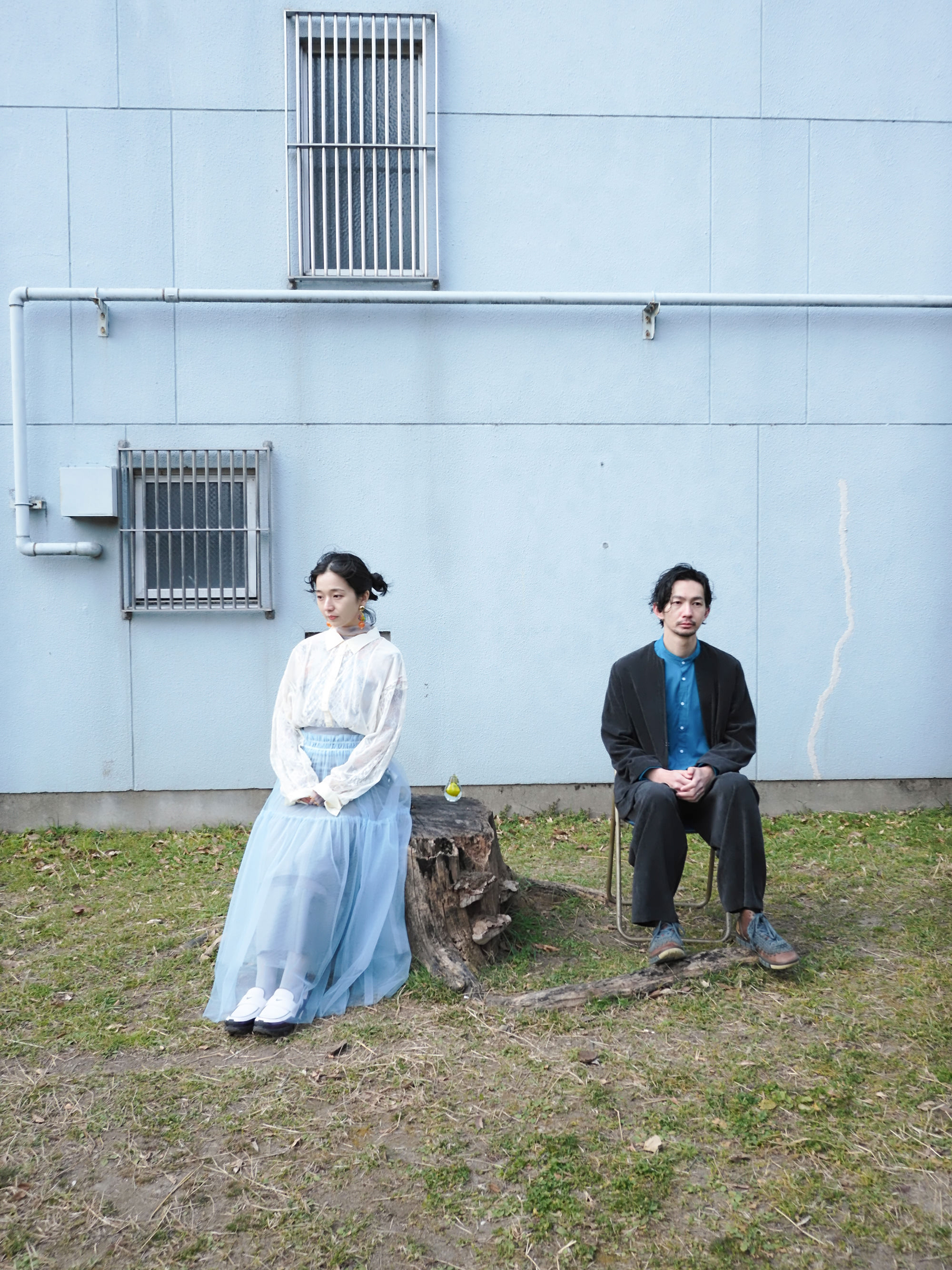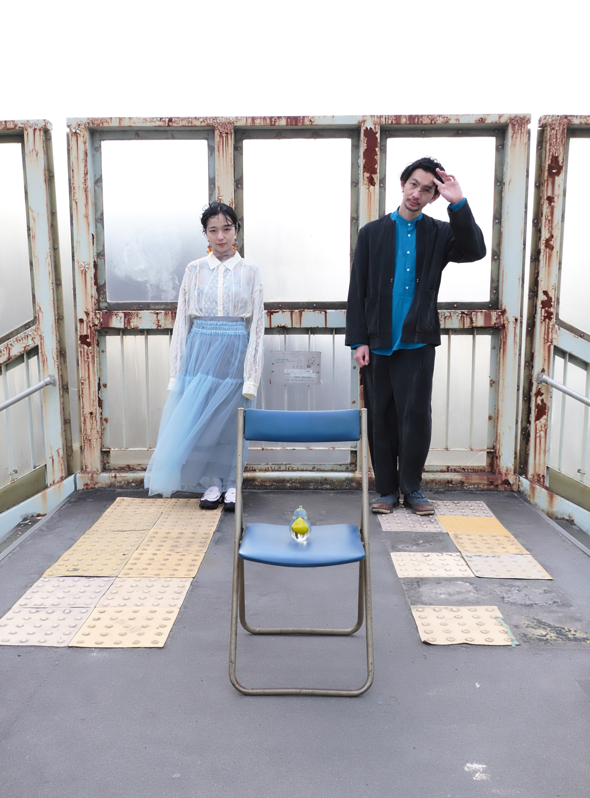 黄色い置物と青い椅子