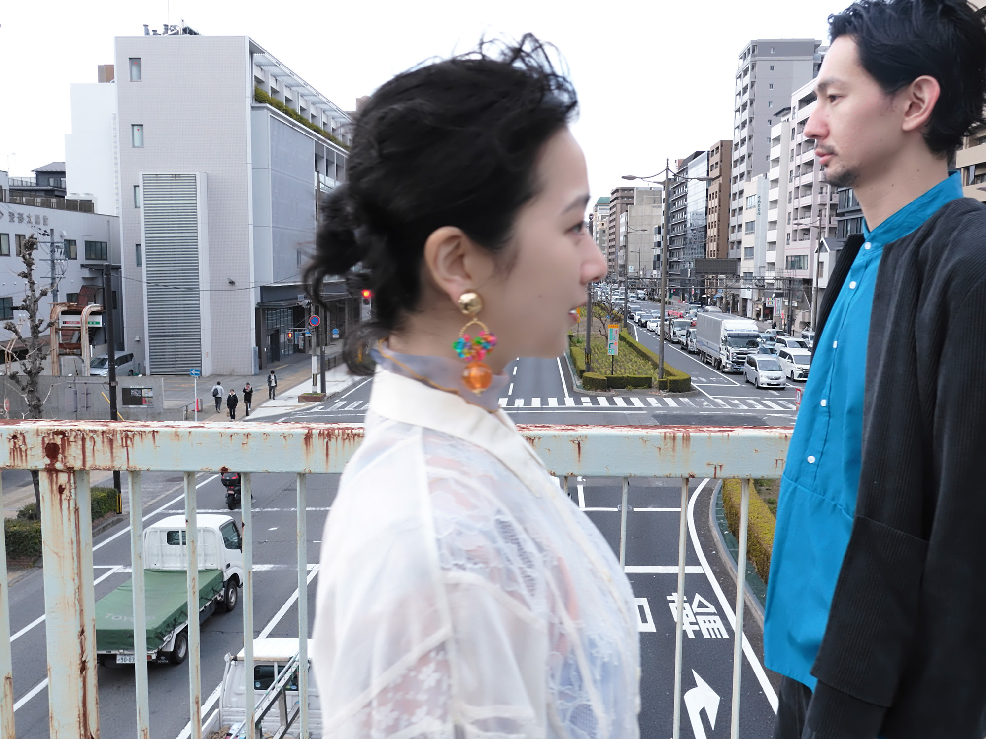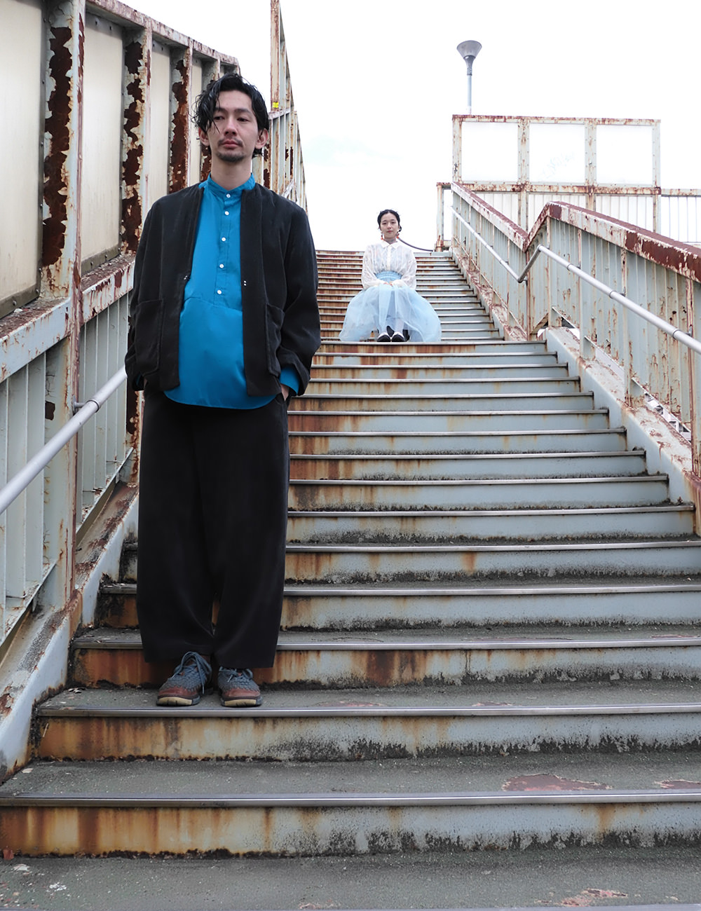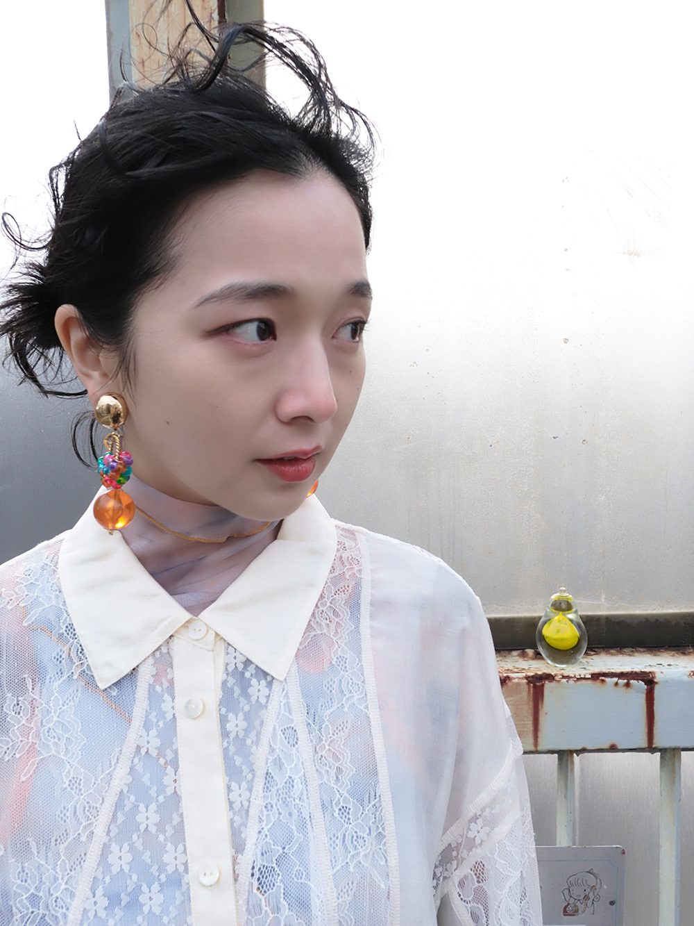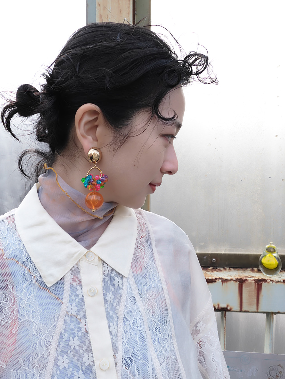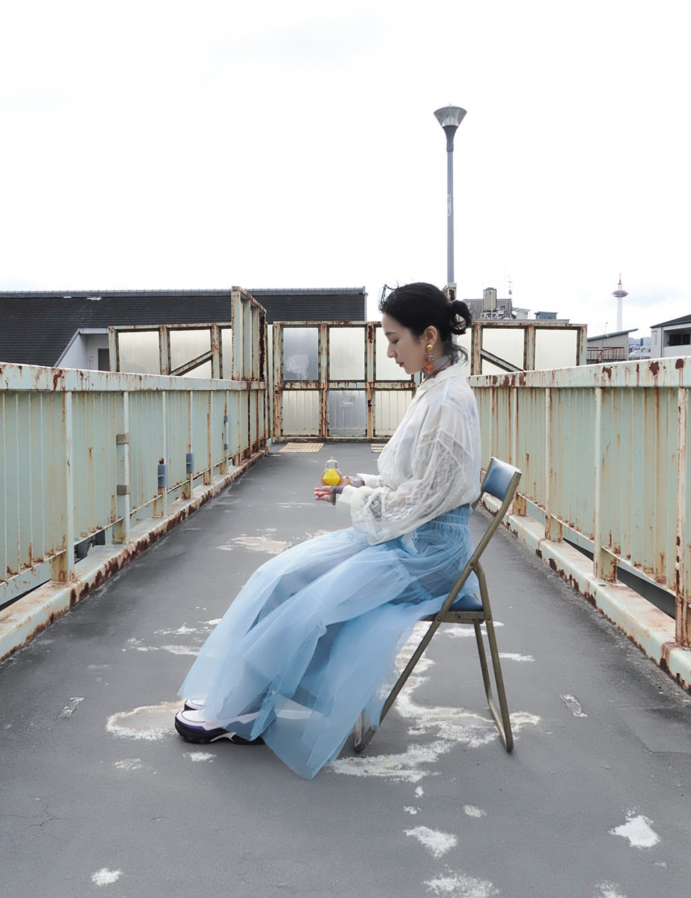 黄色い置物と青い椅子